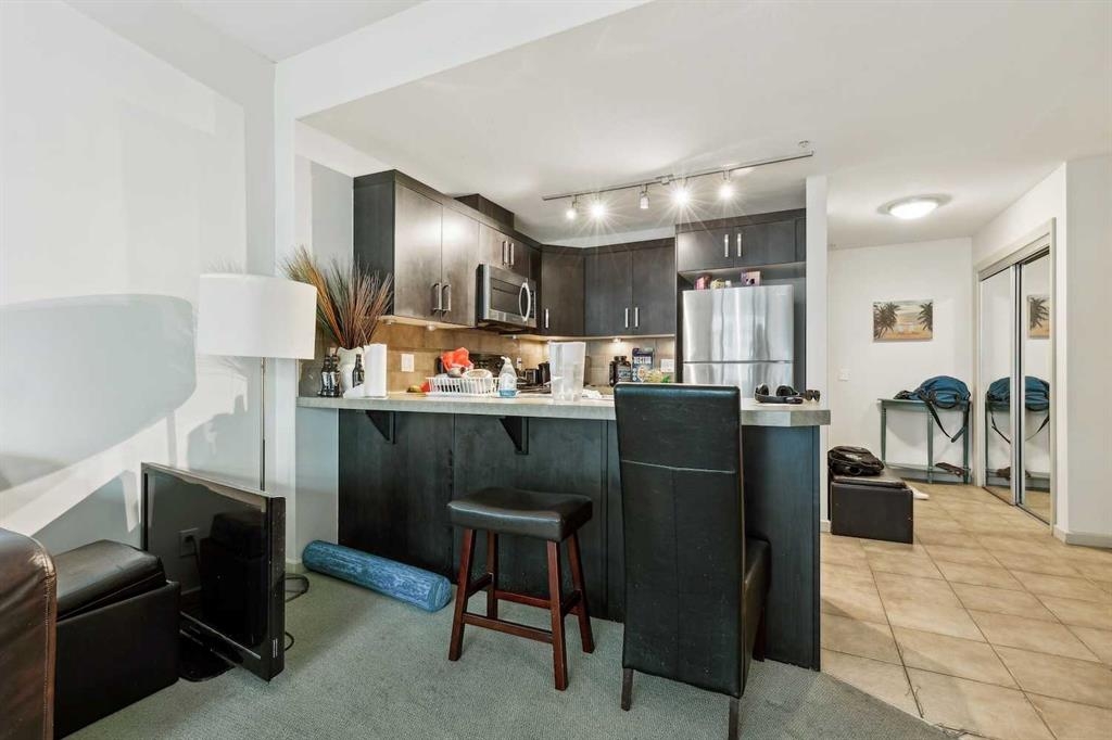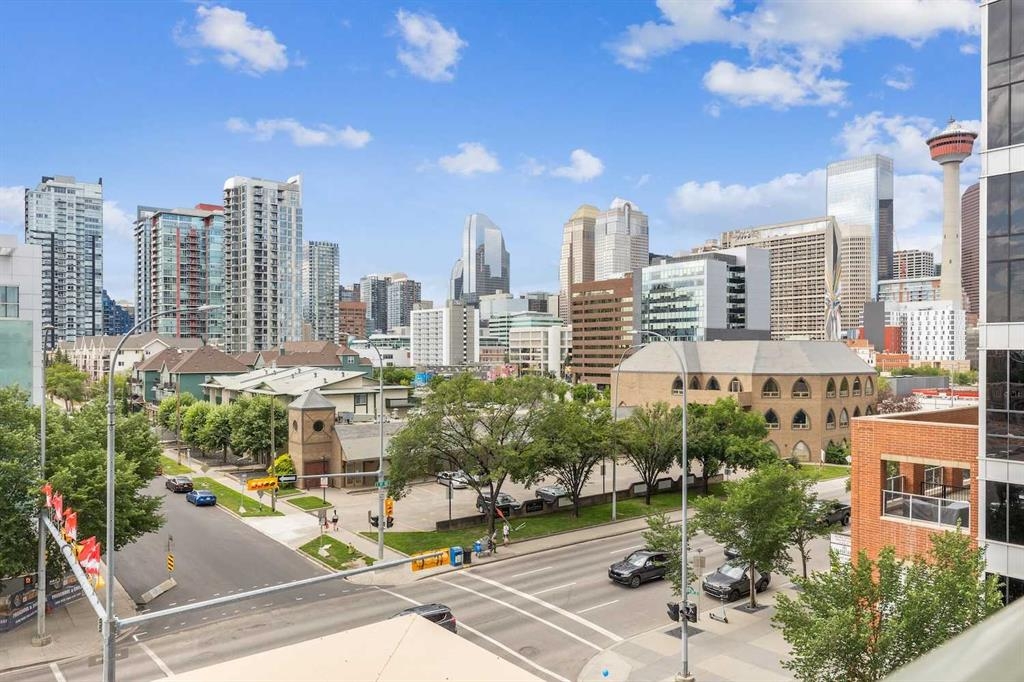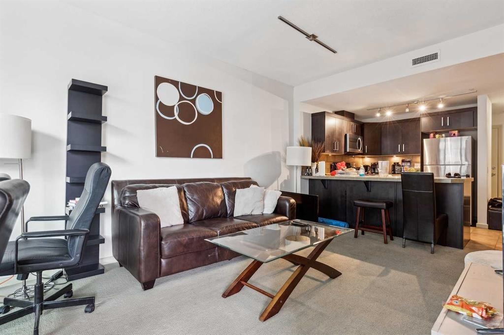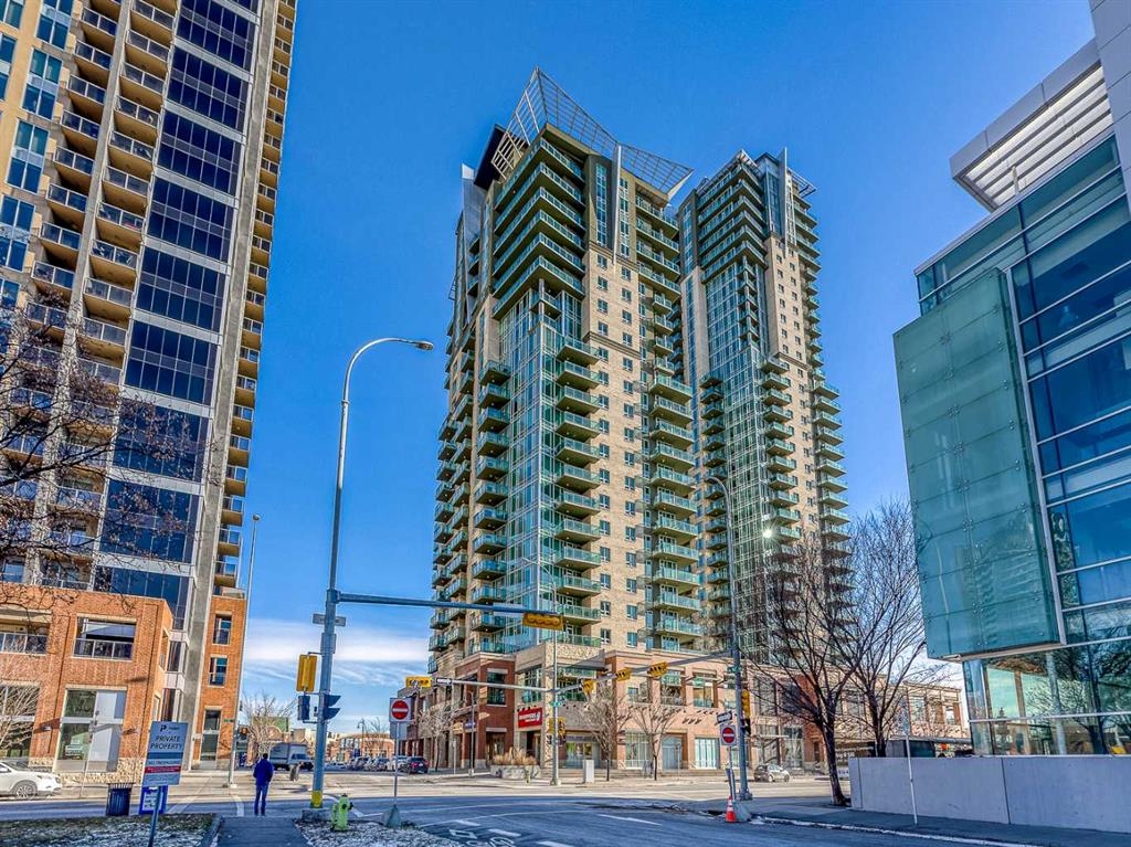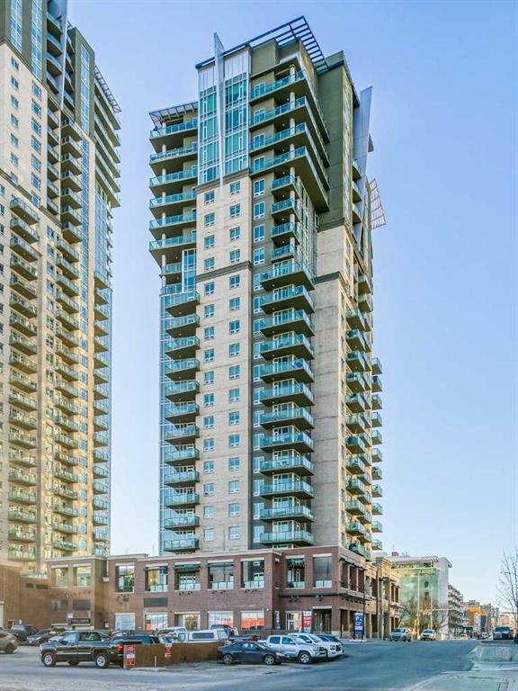 This is your opportunity to purchase an investment with a long term tenant in place! Located in the heart of Calgary’s vibrant Stampede District, steps to 17th Ave and 1st Street shops and restaurants. This stylish condo offers unbeatable access to downtown living. Situated in an 18+ building (dogs are not permitted) the home is ideal for professionals seeking an urban lifestyle. The open-concept layout features tall ceilings and a fantastic kitchen complete with stainless steel appliances (new fridge and microwave in 2020), lots of prep space and a breakfast bar for bar stools. Enjoy summer comfort with built-in air conditioning and relax on your private balcony with sweeping city views. The spacious primary bedroom boasts downtown views, a walk-through closet, and direct access to the bathroom featuring a large soaker tub and a vanity with ample storage. Additional highlights include in-suite laundry, a titled underground parking stall, a separate storage locker, and bike storage. Only blocks from the C-Train and +15 walkway system, the location offers exceptional walkability. Residents also enjoy premium building amenities such as concierge service, 24-hour security, a garbage chute, owner’s lounge, movie theatre, pool table, fitness centre, and hot tub. Bonus: This condo can be sold fully furnished—just move in and enjoy!