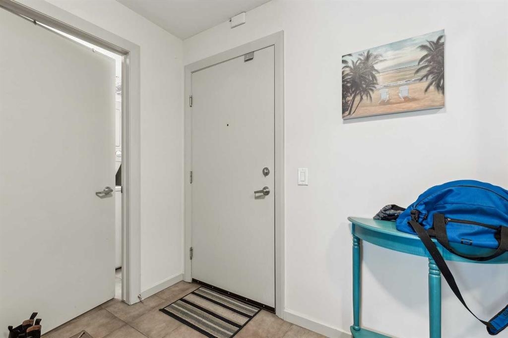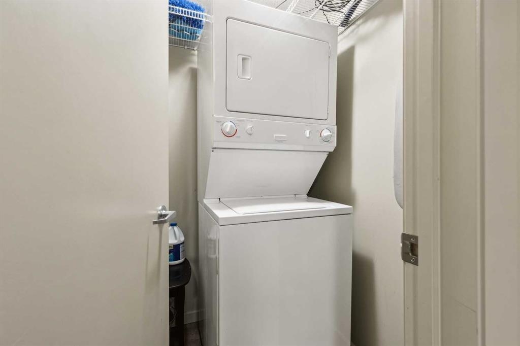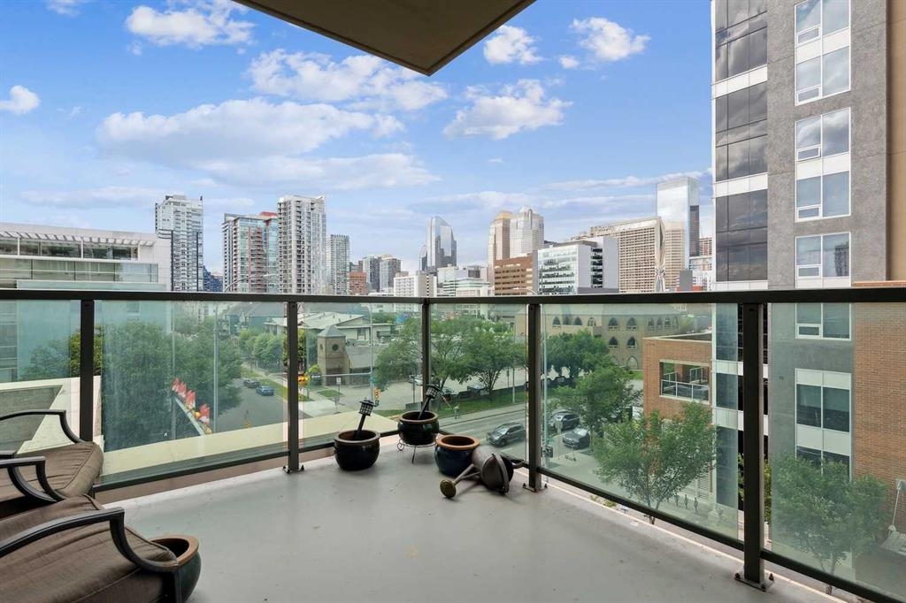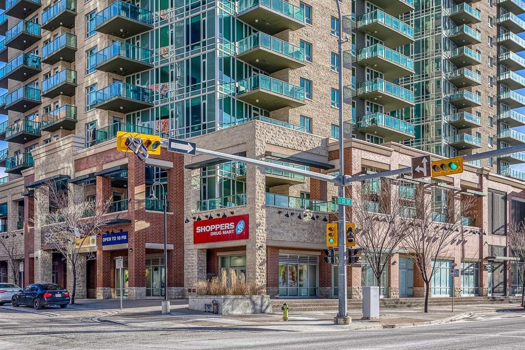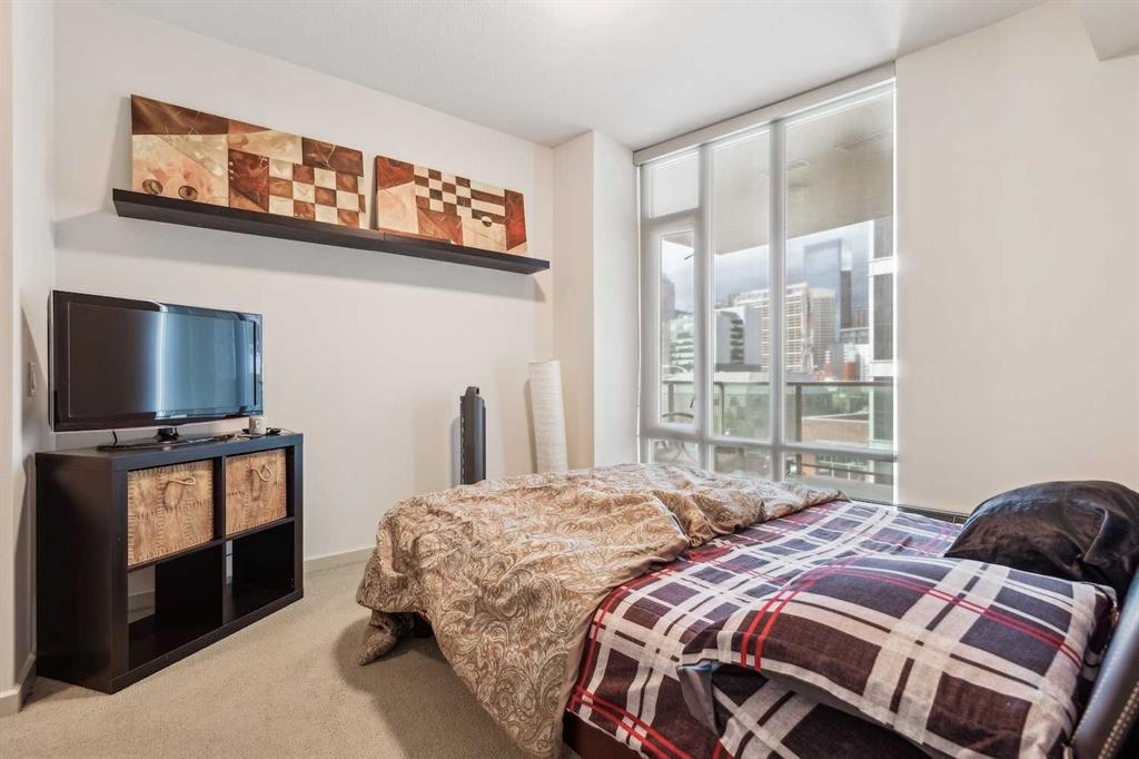 This is your opportunity to purchase an investment with a long term tenant in place! Located in the heart of Calgary’s vibrant Stampede District, steps to 17th Ave and 1st Street shops and restaurants. This stylish condo offers unbeatable access to downtown living. Situated in an 18+ building (dogs are not permitted) the home is ideal for professionals seeking an urban lifestyle. The open-concept layout features tall ceilings and a fantastic kitchen complete with stainless steel appliances (new fridge and microwave in 2020), lots of prep space and a breakfast bar for bar stools. Enjoy summer comfort with built-in air conditioning and relax on your private balcony with sweeping city views. The spacious primary bedroom boasts downtown views, a walk-through closet, and direct access to the bathroom featuring a large soaker tub and a vanity with ample storage. Additional highlights include in-suite laundry, a titled underground parking stall, a separate storage locker, and bike storage. Only blocks from the C-Train and +15 walkway system, the location offers exceptional walkability. Residents also enjoy premium building amenities such as concierge service, 24-hour security, a garbage chute, owner’s lounge, movie theatre, pool table, fitness centre, and hot tub. Bonus: This condo can be sold fully furnished—just move in and enjoy!