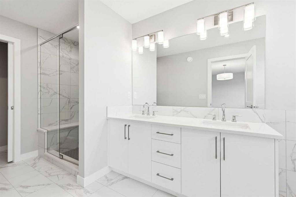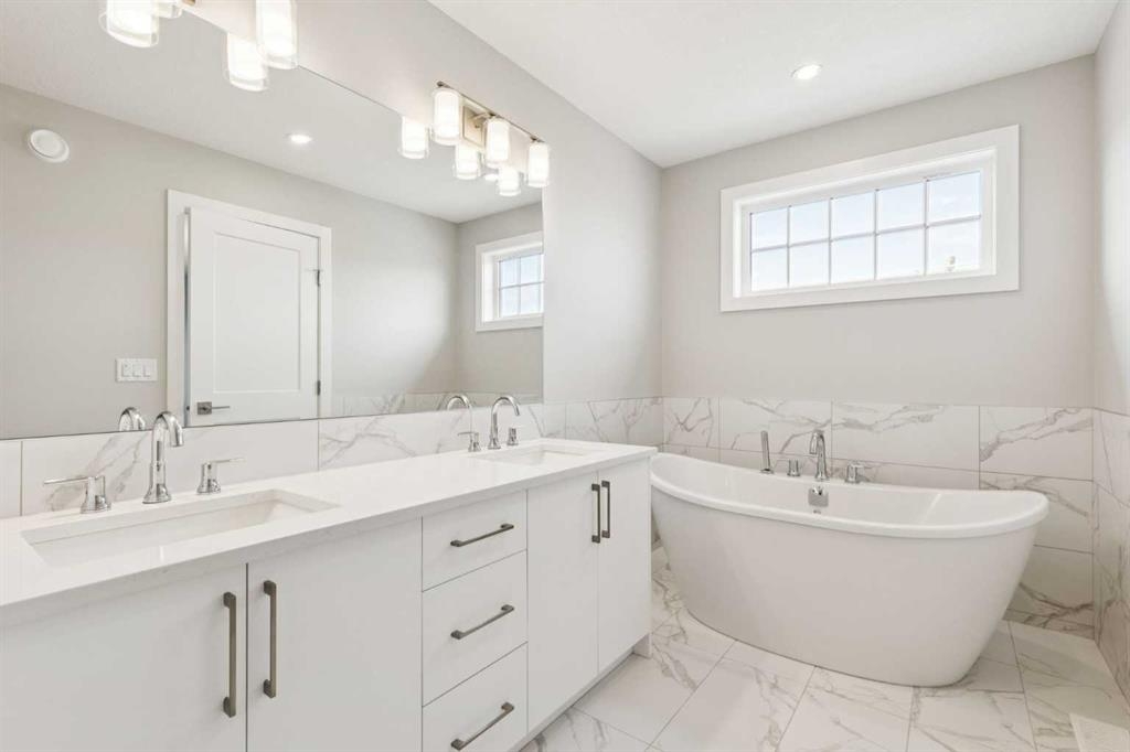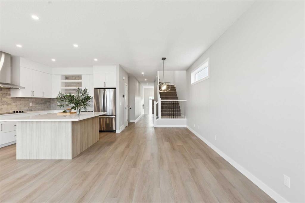 Step inside and feel the calm wash over you – tall ceilings and wide-plank luxury flooring create a light, airy vibe. The chef-inspired kitchen is a showstopper with warm wood grain on the island, soft white cabinetry, quartz countertops, and a backsplash fittingly named White Brick Road. Whether you’re grabbing a quick breakfast before heading out the door or hosting friends on a night off, this space is made for real life. Upstairs, your primary suite is a private escape after long shifts. Soak away the stress of the day in the freestanding tub, or refresh under the frameless glass walk-in shower with tile surround and adjustable-height faucet. Dual sinks, a private water closet, and elegant finishes give it a spa-like feel. Two more bedrooms and a bonus room mean there’s space for guests, a Peloton corner, or a quiet reading nook. Your commute? 20 minutes to downtown Calgary. Your weekend? 45 minutes to the mountains. Walk to the Calgary Farmers’ Market for fresh ingredients, hit the pickleball courts, or follow the nearby paths to the Bow River for a run, paddle, or just a moment of stillness. Winsport and the Calgary Climbing Centre are practically in your backyard, keeping your active lifestyle within easy reach. This isn’t just a house – it’s a home designed for your pace, your goals, and your well-earned downtime.